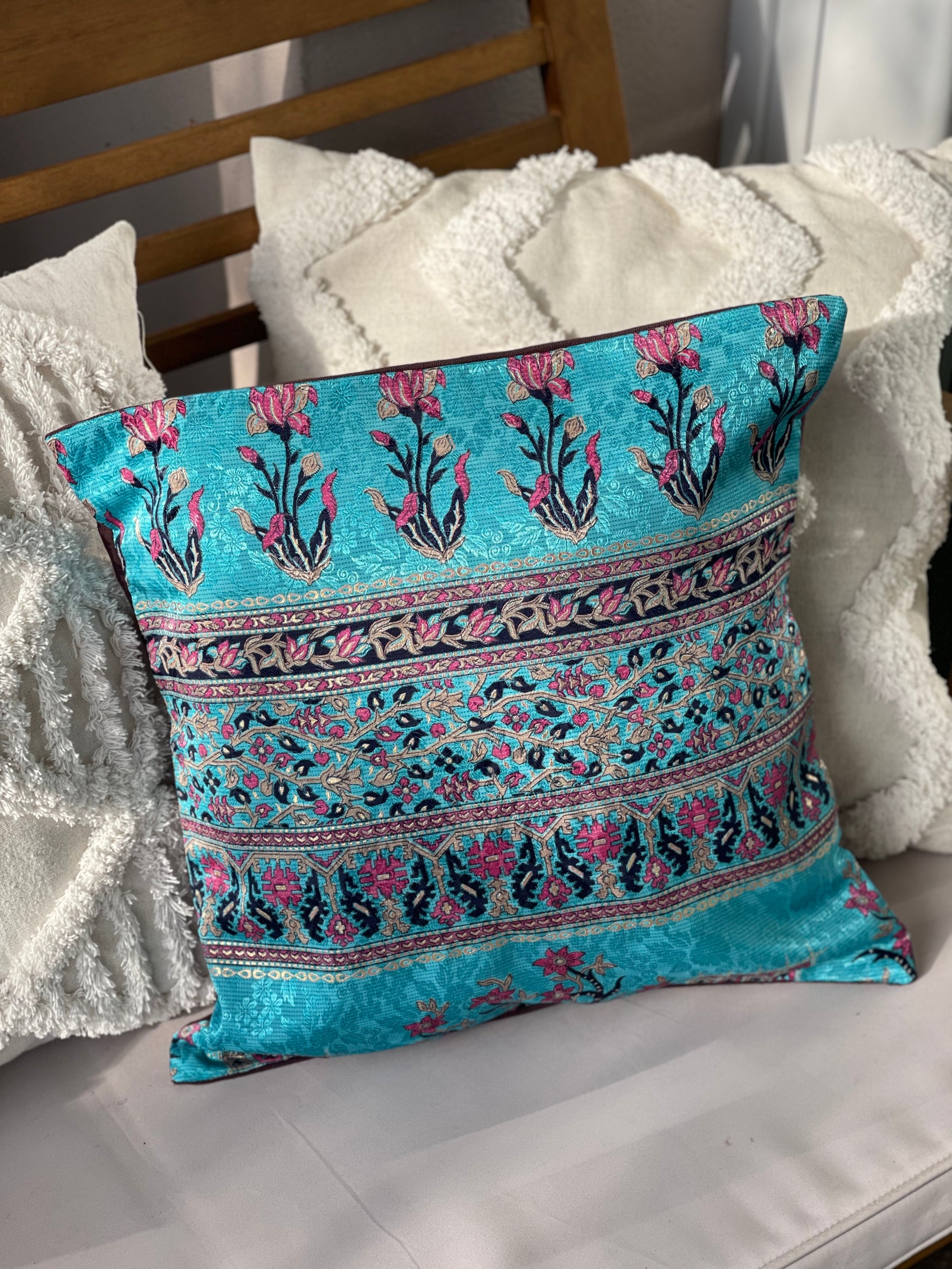 Federa per cuscino in viscosa e retro in seta grezza color marrone, perfetto per aggiungere un tocco di colore al tuo arredamento.